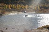 Все переобулись, вещи закидываются обратно вместе с шоссейной резиной. Решили всё это дело (лишнее) оставить на ответственное хранение у сторожей заповедника. Бодренько завелись и дружною толпою пошагали на первый брод через р.Баргузин. Осматриваемся. Вода вроде бы и не большая с виду но сапоги все же одели и все ценное поднять с пола. Патрон издевается что тут даже подножек не замочим. Он был почти прав. Мы воды хапнули только один раз и не тут. Первым как обычно бродит Толстый (
