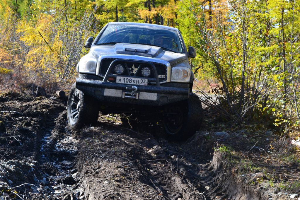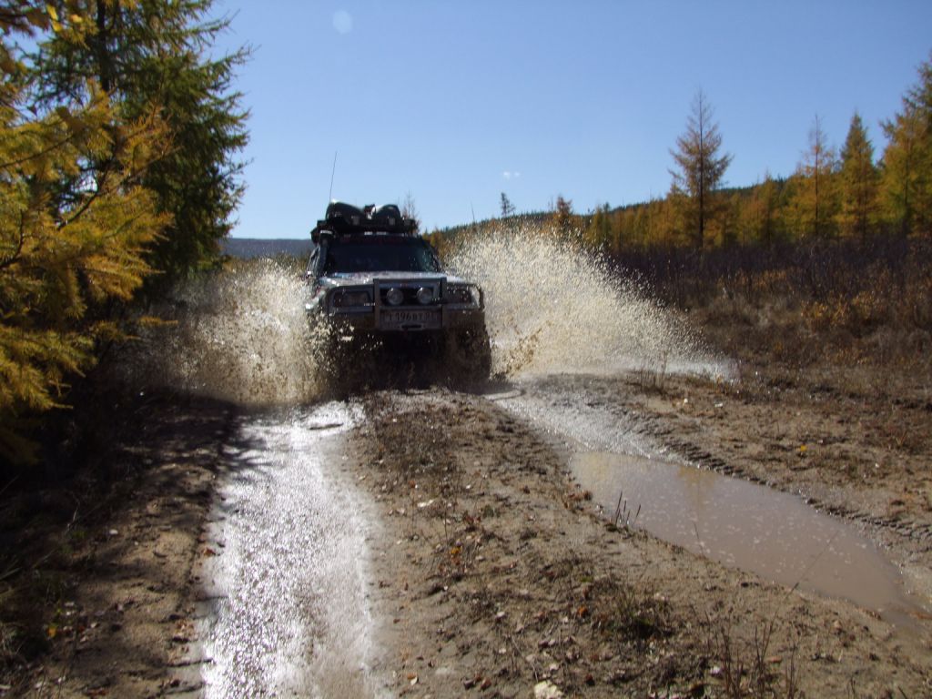 На второй день проснувшись очень рано первым делом залез в горячую ванну пока народ не набежал и расслабился. После такого отдыха никуда дальше ехать не хочет, а вылезать из воды тем более. Но сердечко оно одно и поэтому 15 минут прогревания и на выход. Все как обычно дрыхнут. Поэтому пинаю балду. Помаленьку народ просыпается и выползает из домиков на улицу. Начинается неспешная подготовка к преодолению бродов и всяких говномесных мест. Шмурдяк выбрасывается из машин на улицу. Народ местный толпится, для них это хоть какое-то развлечение.