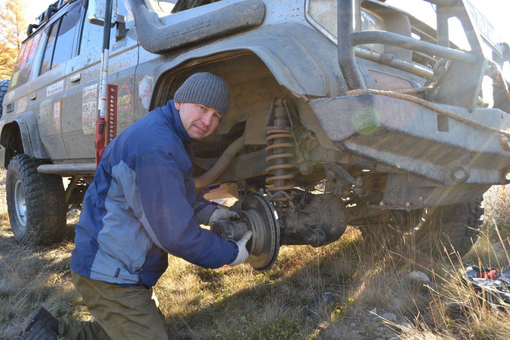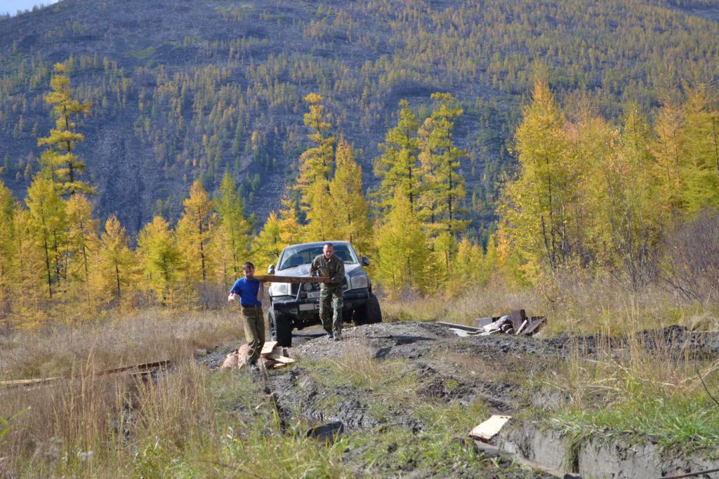 Перебродили и на педсовет. Как быть дальше. Решили что мы продолжаем движение, а остаток будет тут рыбачить, отдыхать. Отдним словом вести разгульный образ жизни. Раз разбегаемся то и шмурдяк надо выкидывать. Выбрасываю все лишнее из машины. Договариваемся где и как мы встретимся на обратном пути. И продолжаем свой путь. Цель достичь сегодня 110 и на бывшей базе геологов переночевать. Удаляемся быстро. Уходим в очередной перевал. Переползаем его. У меня совсем нет тормозов. Тащусь на спуске на пониженной. Снова купаемся в многочисленных ваннах иногда успешно преодолевая их иногда нет. Выдергиваем нашего компаньона. Кстати до сих пор не обмолвился об его имени. Он представился нам как Владимир.