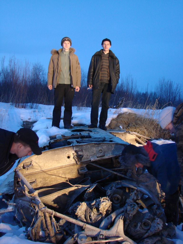 Заезжаем до мс, просимся на ночевку. Потом едем до нашей старой базы вниз по Ципе 600 м. От базы осталось два полуразрушенных зимовья. Находим хреновину странного вида и предназначения. Теряемся в догадках.