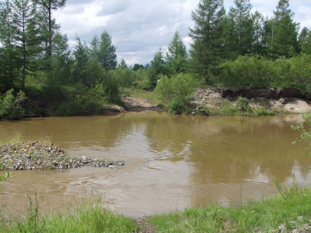 В темноте кажется большим, вода мутная (как оказалось  старатели выше моют россыпь). Эх, такая вода на обратно пути была бы счастьем.