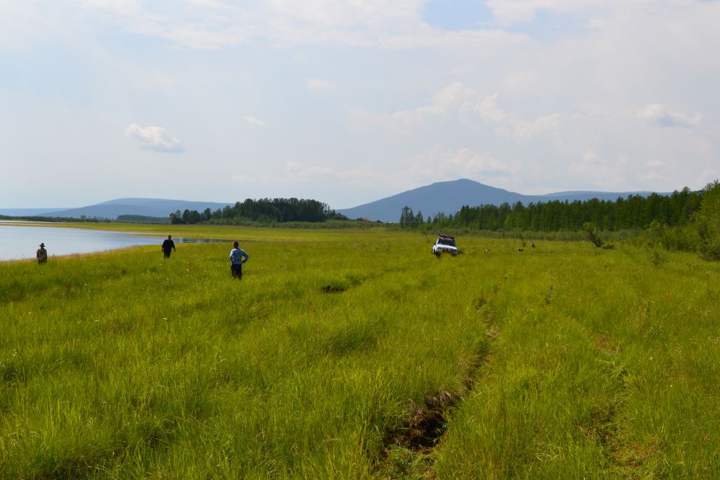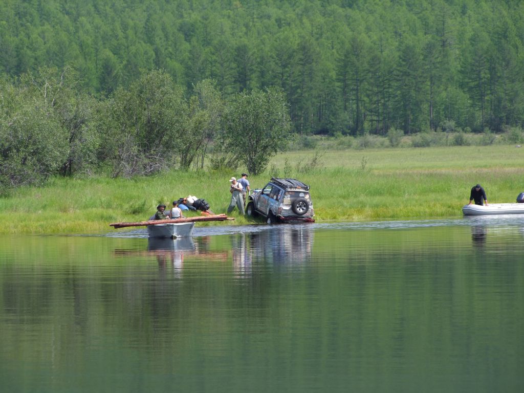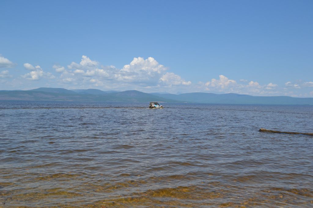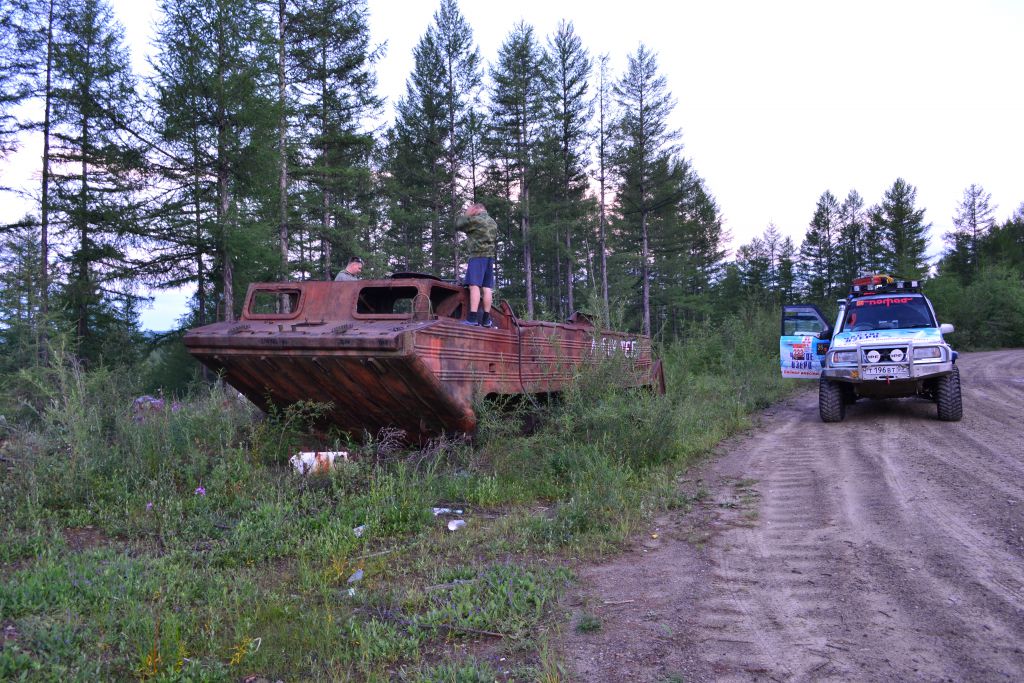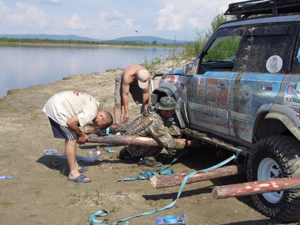 После ночного трофи-рейда настроение ниже планки. Приходят  мысли о том, что дальше вообще все будет плохо, раз даже на берег съехать не  смогли. Мысли о Могое  уже не такие яркие,  до баунтовских переправ бы доехать. На совете решаем по максимуму разгрузить  машины – ну очень ночной трофи рейд вымотал. Надуваем лодку, ставим мотор, в  нее шмурдяка кг 200 отправляем Патрона по Ципе   на побережье озере с переноской для связи. Сами опять на Переменчиху.  Там скидываем в кустах еще 200   кг железа с топливом, т.е. все запчасти, масла и вперед.  Едем! Не легко, но при свете и на облегченных по максимуму машинах, объезжая  засады по заболоченному ручью техника идет сама. Выезжаем на берег – и вот оно  счастье! Машина летит по песчаному