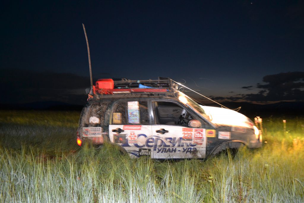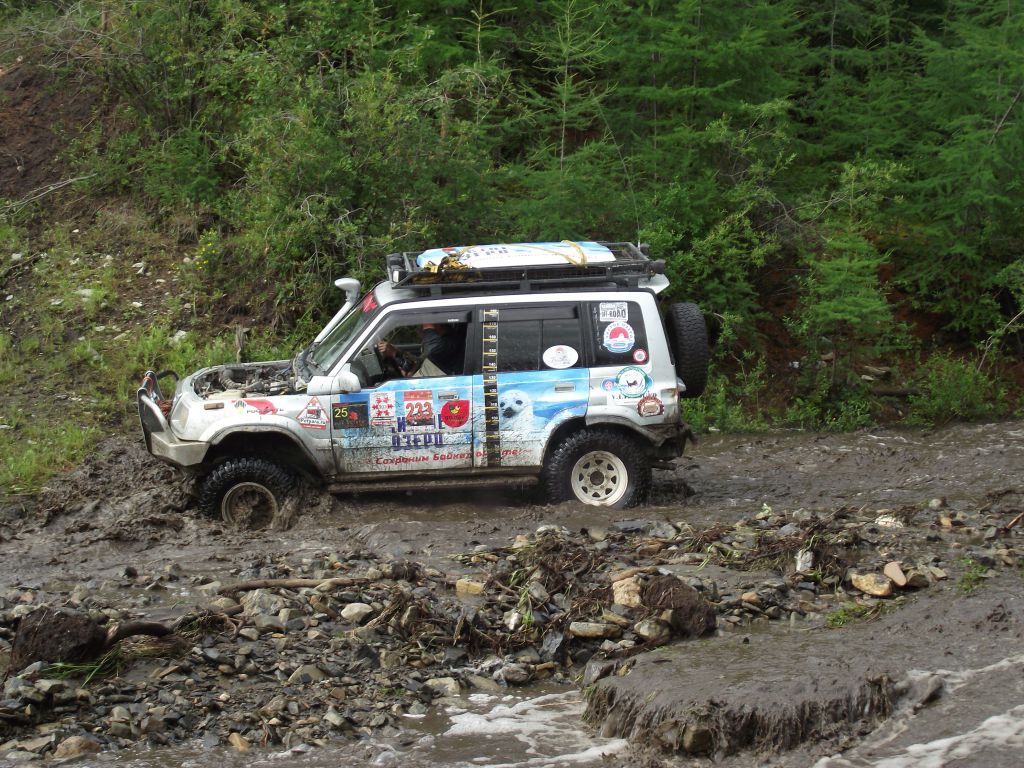 Под темноту этот кошмар заканчивается, переезжаем по  сандтракам последний из ручьев, пересекаем поляну пред бродом Могоя, и вот  последняя преграда – река Могой.