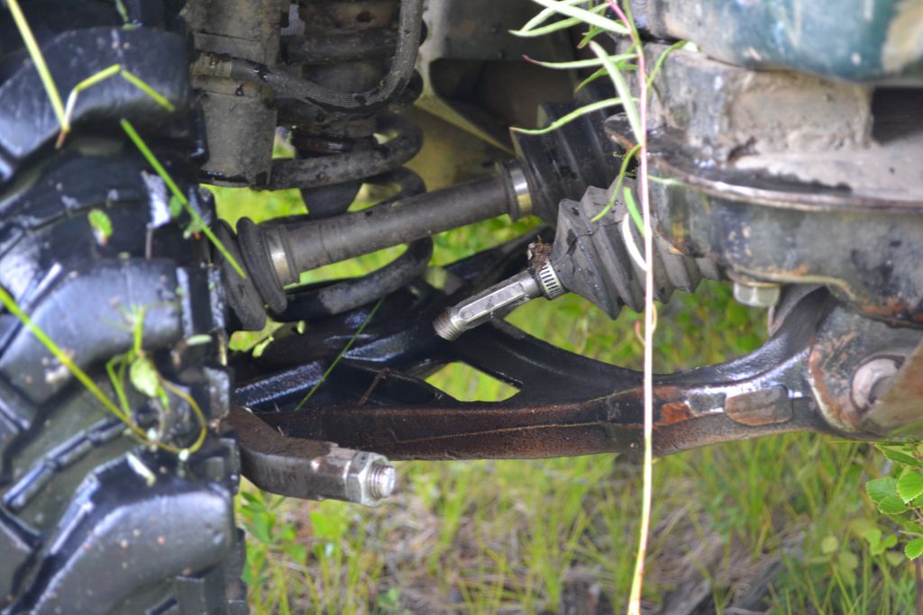 Кое у кого началась паника) До источников 300 метров, цепляем меня  за мотоса, тащи волоком. По болоту. Местами завожу сухой двигатель и помогаю  ему. Перед самой поляной от резкого рывка разбортируется колесо. Еще нелегче…  Бортируем, ищем объезд по кустам, проползаем.