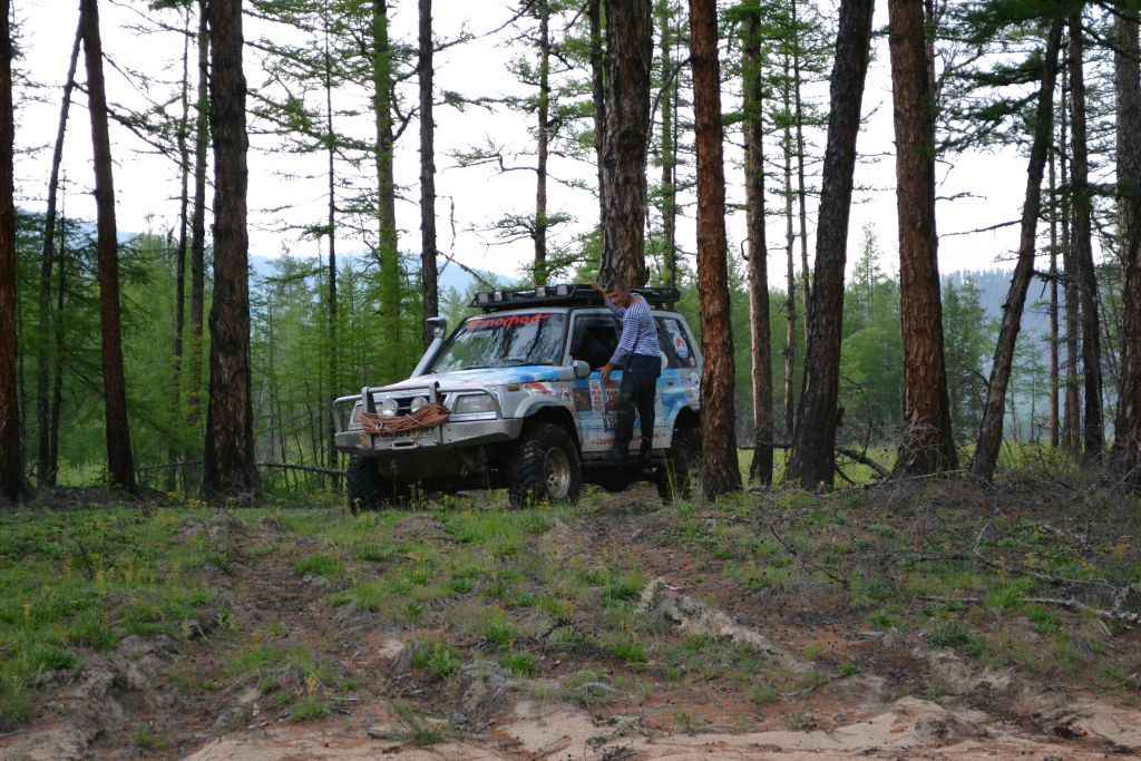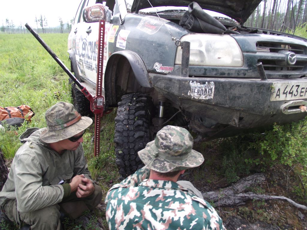 Лезет в багажник, долго там роется. Все в напряжении. Тяга  нашлась-таки, чудом не выгрузили на Баунте. Меняем, ползем дальше.