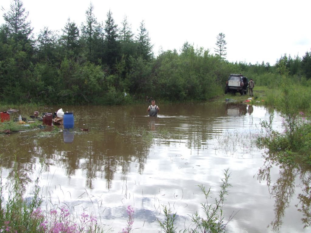 С утра всех разбудил Андрюха «На улице дождь идет всю ночь! Сильный!!!»  (Это был первый тревожный звонок, ночные несколькочасовые ливни довели экипаж  экспедиции до ручки, то есть до самолета)