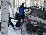 Тут ожидает Саббер с кипой бумаг. Забираем координаты и в путь уходим первыми. Хотя к промежуточному финишу черный эскудик приехал первым. Прём вперёд забивая на ходу координаты единственной точки. Уходим в гору. Вот оно горлышко пади. Девственная белизна снега. Видно что кто-то ходил но точно не ездил. Поставили себе задачу уделать Толстого. Поэтому не едим, а летим. Впереди какой-то буерак не пойми как ехать. Далеко не проехали. Рюхнулись в овраг. Висим. Раскамчиваем машину. Вжик-Вжик туда обратно, тебе и мне приятно. Но не приводу моста. Под снегом не видно камней. Цепляем камешек и сильный дзынь.  Что-то сломалось. Женька показывает пальцем, что колесико левое не крутится. При этом сзади Толсный благим матом орет, чтобы его перца пропусти. Шиш ему. Лебедку за сосну и медленно вылезаем из западни. Но не успеваем перекрыть дорогу. Бензопила Толстого обходит нас по обочине и он первый. Вылезаем из ямы и цепляемся ему в хвост. Пусть понервничает. На трех гребущих колесах едим не так уверенно. Но едем. Точка то рядом. Впереди развилка. Толстый сунулся направо и остановился, я перебрался через очередной овражек на лебедке и подпер его. Чтоб так сказать не сбег. Его штурман (Колек) метнулся сначала направо по дороге и видимо просёк, что не туда нам всем надо, побежал налево, а мы не долго думаю туда уже едем. И впереди этой назойливой бензопилы. Метров через 50 шлифуем снег и вперед уже не едем. До точки 450 метров. Толстый обнаглел в край и лезет на обгон справа где и муха не проскочит. Обтирает своей грязной машиной мою чистую запаску и задний фонарь. Честно сказать хотелось ему по фюзеляжу надавать. Вышел посмотреть чего этот отморозок наделал и как бы ничего такого страшного с виду. Но осадок остался. Догоню ноги вырву. Устремляемся за ним. Его счастье, что машина не едет, а еще и тормозит колесом с мертвым шрусом.  Впереди навалены деревья. Пока Бензопила бензопилой нам расчищает дорогу я по быстрому проверяю колесо на предмет, а вдруг это все же хаб умер. Скинул его. Ан нет. Все же привод. От руки болтается. Собираю все обратно. Пофиг так доедем ведь цель близка. Но это только по карте. Далее пошел не детский секс. Отметка 350 метров. Мы уже только на лебедке. Машина не едет. А скатывается вниз. Толстого уже не догнать. 300 метров на лебедке при том, что на барабане намотано всего 18м. Остальное все оборвано ранее и заменить было лень. Напоминаю что мы ехали отдыхать, а не биться как будто в последний раз. Далее нудный подъём на лебёдке. Женька уже вымотан. Постоянно закусывает кевлар и барабан лебедки сам не крутится только при помощи камаповского электродвигателя. До точки остаётся метров 50. На приборной доске тухнет все. Рация показывает 9.7 вольта. Офигеть. Дожил. Акум сдох. Машина на оборотах заряжает батарейку. 15 минут заряжаем 5 минут тянем. По 10 метров. Мучение но делать нечего. Снизу собирается пробка. Но меня то никак не обгонишь. Один отморозок который может меня обогнать где то впереди, остальные не поехали на эту покатушку :). Толстый к этому времени уже взял точку и ушуршал вниз. Мы все едем через подзарядку. До нашего бампера подтягиваются самые активные и обсуждают как бы объехать наше обездвиженное тело бегемота. Кавалькада уже не детская. Эскудики, уазки, стопятка и еще всякой мелочи на добрый десяток. А нас то не перепрыгнуть. Доползаем до точки ее у