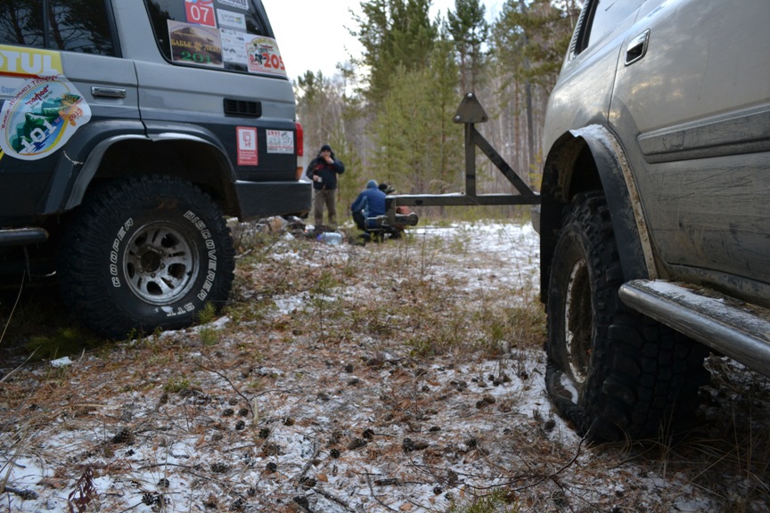 На этой бы точно не доехали, там подлесок в руку толщиной валить приходилось. На фото не попало. т.к. из машины было выйти проблематично. 80 останавливалась, немного назад и с разгону снова фперед. За симекс не очковал. а куперу не повезло, это да.