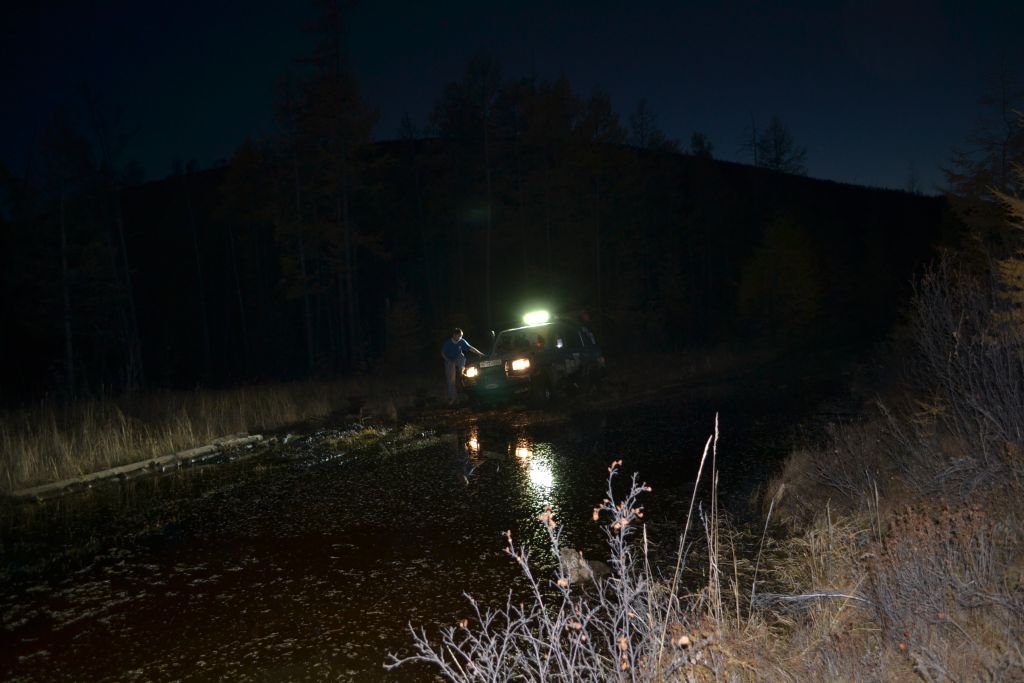 Машин встречно-попутных практически нет. Километры пройденные тянуться медленно. В районе туннельного еще днем на встречу попался джип с наклейками на иркутских номерах. Надо было его тормознуть и проверить на наличие отсутствия деталей подвески. Не додумались сразу. А потом пытались безуспешно просканировать частоты в поисках связи с данным экипажем. Едим не жужжим, по дороге кушаем и проверяемся как там подшипники. Болтаются, но работают. Цапфе точно хана будет с такой ездой.