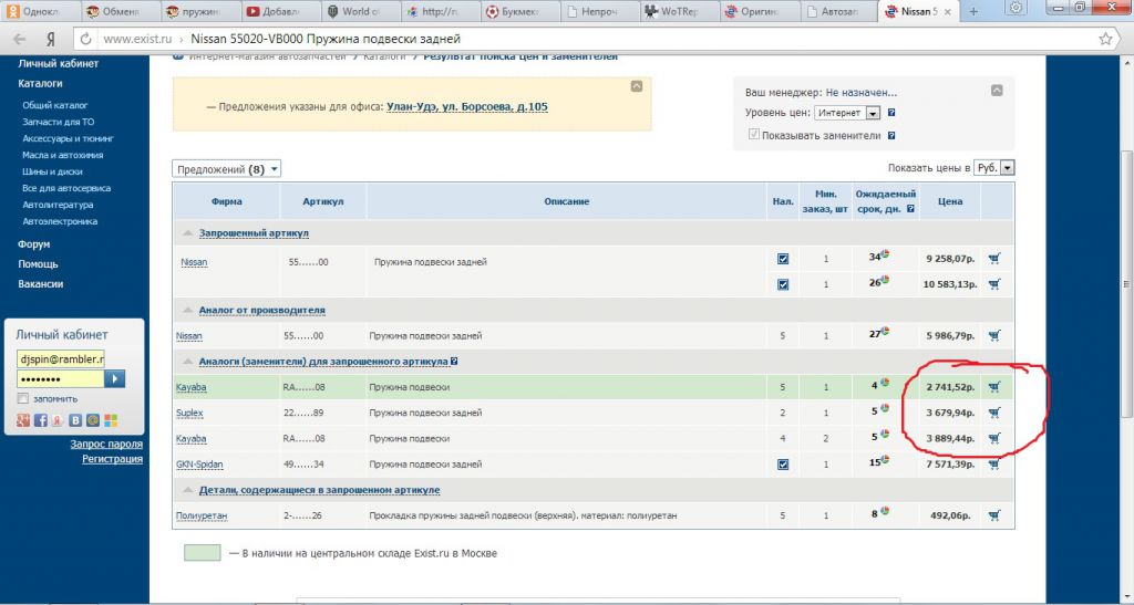 Аналоги (заменители) для запрошенного артикула